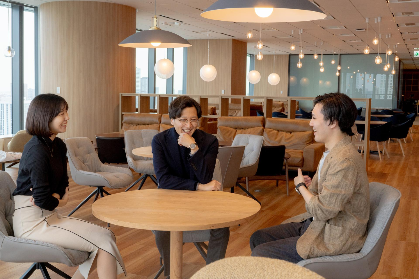 六本木から、麻布台ヒルズに移転してもう5か月!移転当初は、工事中で通り抜けもできなかったカフェブースや会議室も完成し、いまや社員の憩いの場となっています。