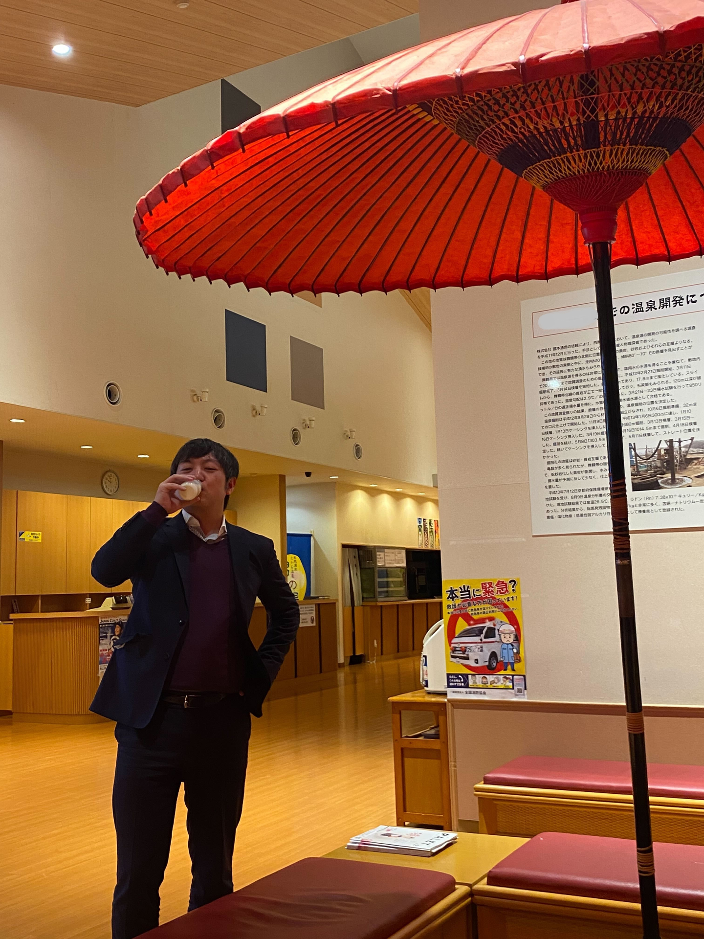 プロジェクトがひと段落したタイミングで地元の温泉へ。風呂上りのビールならぬ牛乳。