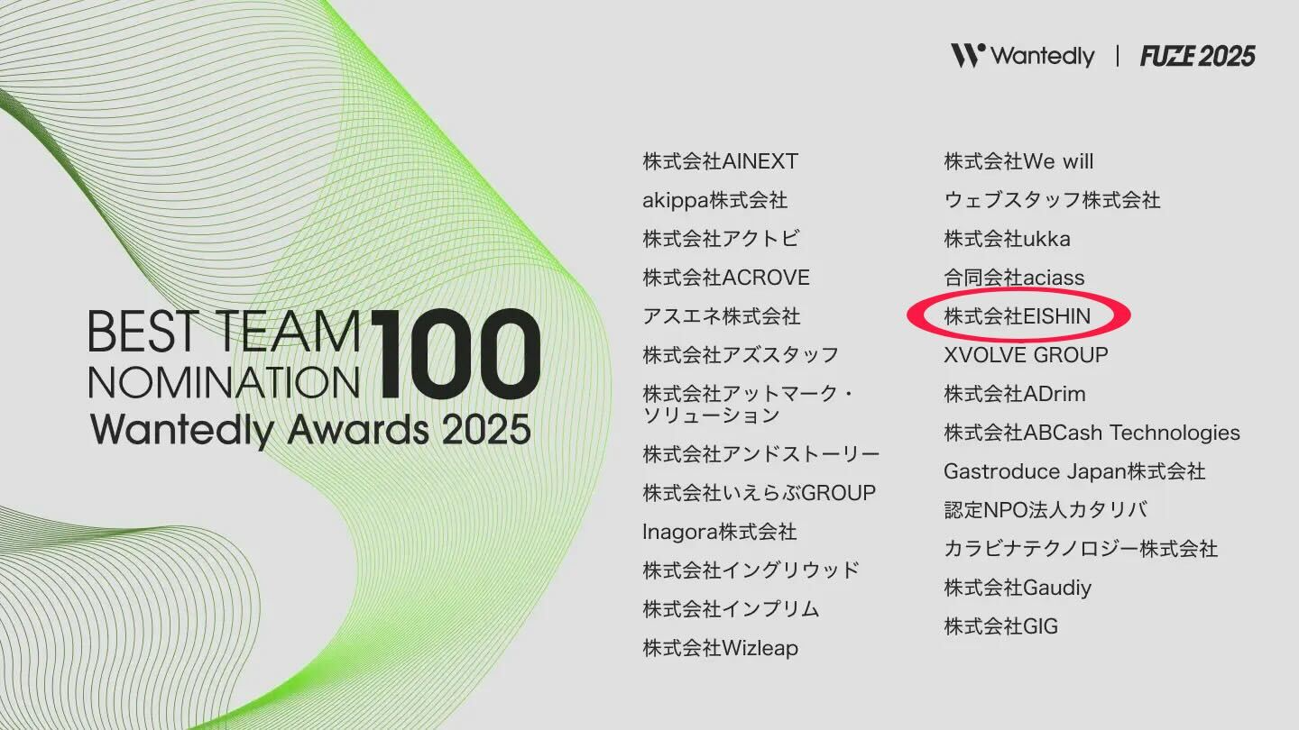 こんにちは!株式会社EISHINです!!なんと!この度、株式会社EISHINが『Wantedly Awards 2023 Best Team部門 TOP100』にノミネートされました!✨メールで...