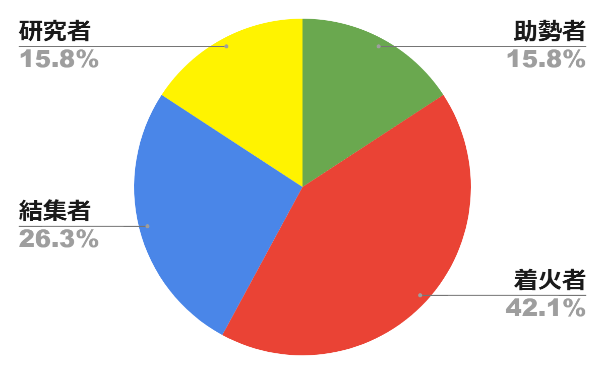 割合としては『着火者』が多かったです!🔥EISHIN内の立ち位置としてもリーダー層が『着火者』であることが多かったので、性格の傾向としてリーダーというポジションが向いているのかもしれませんね🤭💡