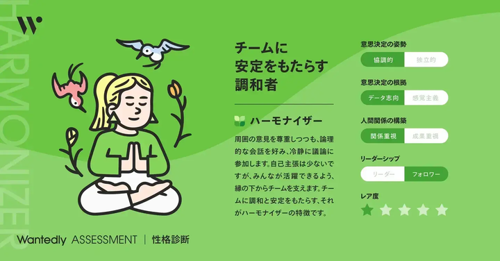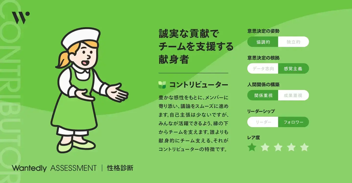 前回の記事にも記載しましたが、Wantedlyの性格診断では、