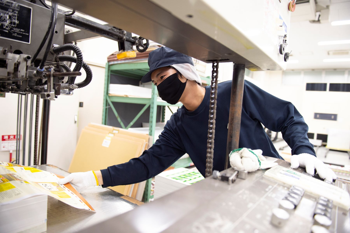 甲斐田は、福岡県立工業高校卒業後、弊社に入社。社内でも1番難しいといわれているオフセット印刷課に配属された。入社6年目。 主な仕事は、お菓子の箱などのパッケージを印刷する「オフセット印刷機」のオペレーター。印刷をするのは機械だが、色を合わせるのは人が行う。お客さまが指定される「色」と、印刷されたものが同じになるよう、「目」で確かめ、調整していく。その「色」になるように近づける。「色がぴったりと合った時の達成感がやりがい」だと目を輝かせる。