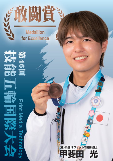 本人は、「悔しさでいっぱい」と言うが、最下位からの敢闘賞。それも銅メダリストとの僅差。残念なことに変わりはないが、「日本代表」というプレッシャーの中、経験のない作業を短時間で習得し、本番でのアクシデントにも「どうにかしよう」とすぐに動けるその行動力は、素直にすごいことであり、同じ社員として誇らしいとさえ思う。 彼自身、「印刷の知識や技術は深くなったと実感している」といい、帰国後、悔しさと疲れをにじませた彼の顔は、出国前よりもたくましく感じた。