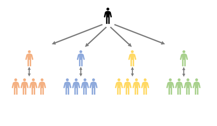 1人のリーダーのもとに、4班のサブリーダーを置き、サブリーダーが自分の班のメンバーの仕事量を把握します。