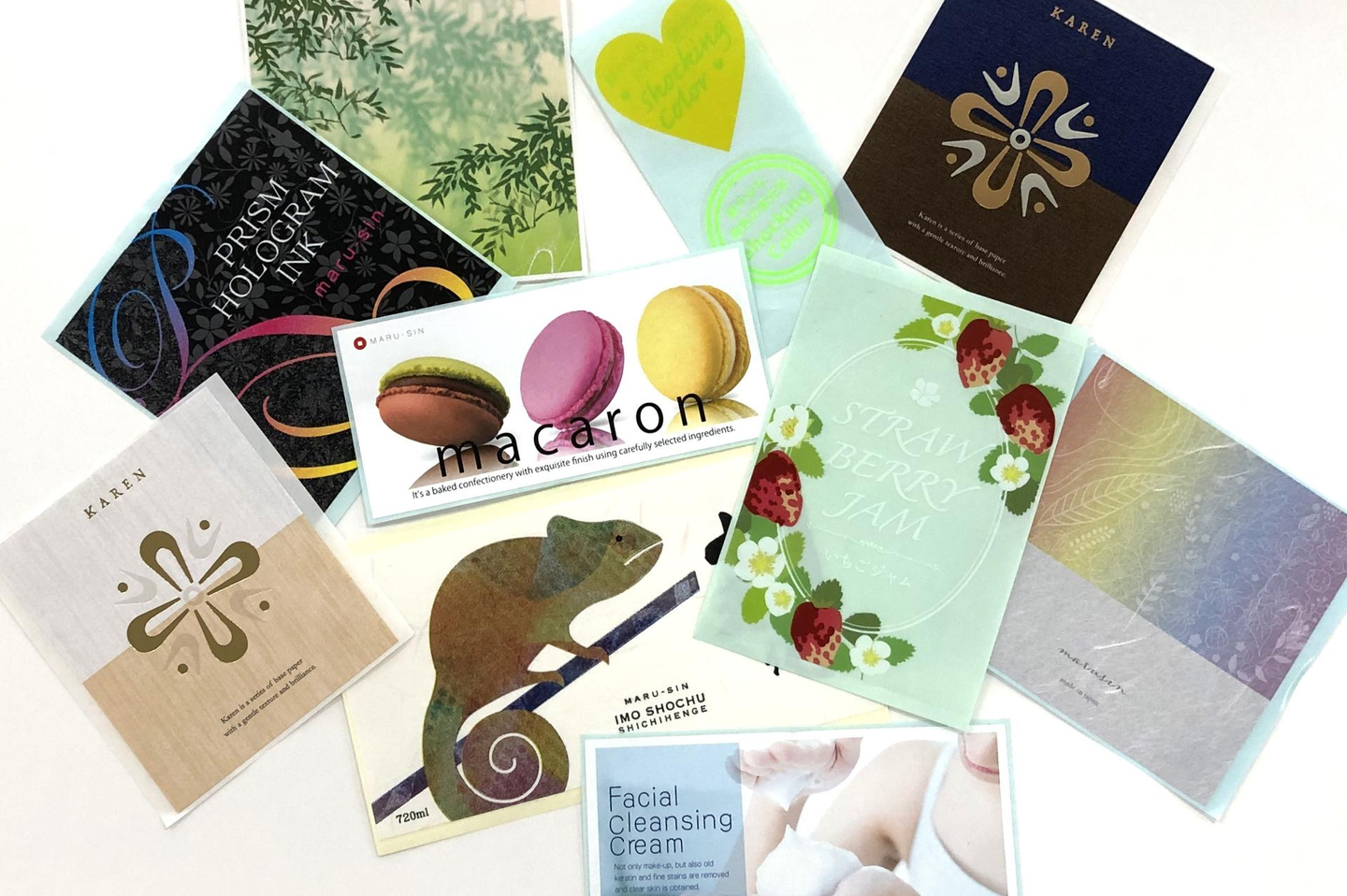 シールデザインを担当することが多いですね。最初は、商品のちょっとしたワンポイントのシールから始まりました。その後、スーパーの生鮮食品やお惣菜に貼るシールも経験し、今は、お酒のラベルやジュースのシールなど、商品の ”顔” となるデザインにも挑戦しています。