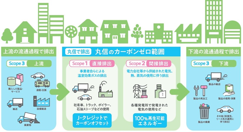 当社がCO2排出量を実質ゼロとしているのはScope1および2の範囲で、現実的にゼロとできるのはこの範囲と言われています。その先のScope3には従業員の通勤や、原料の仕入、完成品の納品先などが含まれており、一企業としてコントロールするのが実質的に難しいのがその理由です。