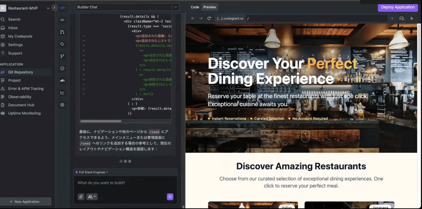 - Builderモード:最小限の指示からPRDを生成し、アプリ全体を自動実装。