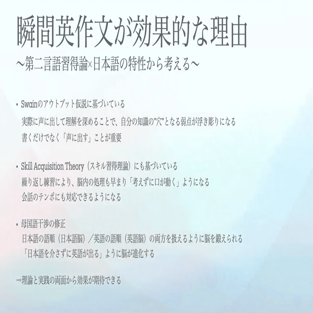 - 🧩1人目「瞬間英作文で英会話が上達する」