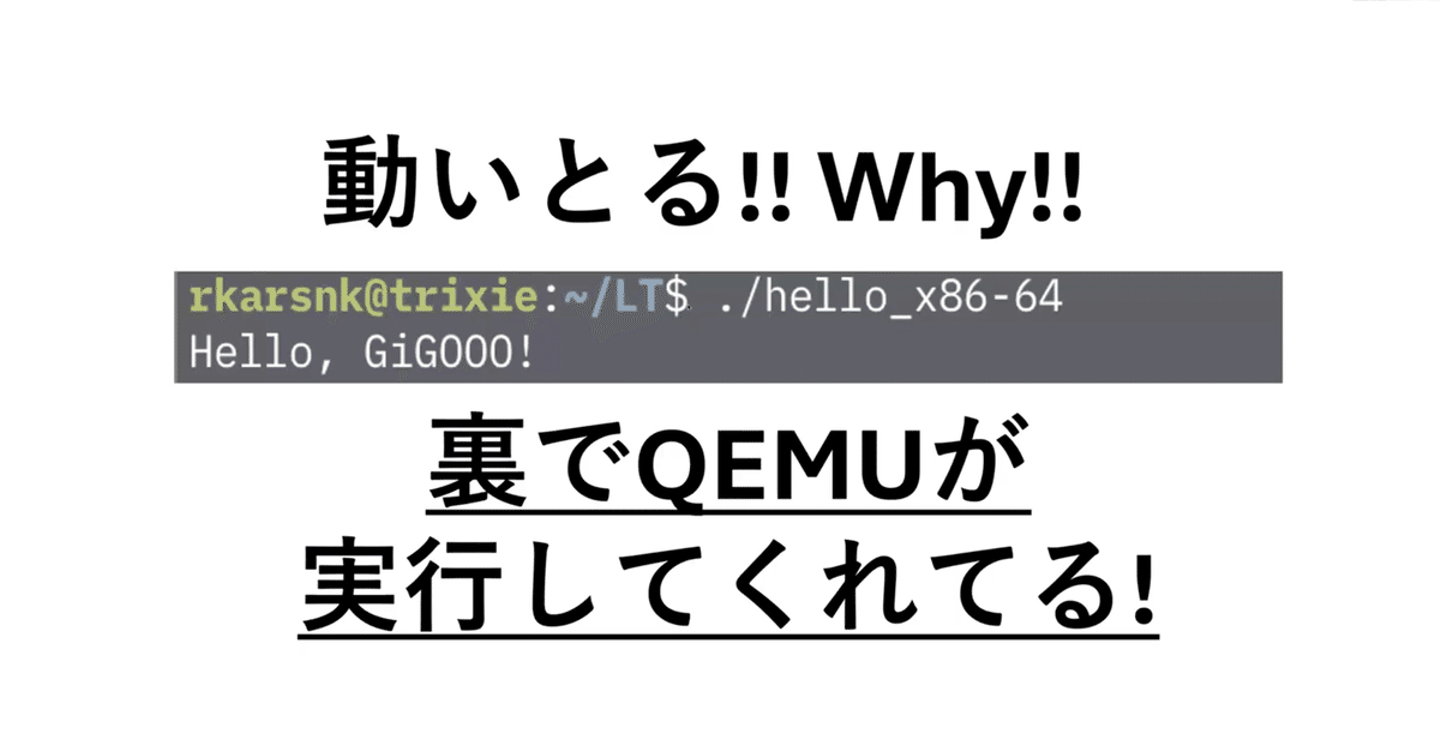 ラストは「マシンエミュレータとしてのQEMUについて」ご紹介いただきました💻