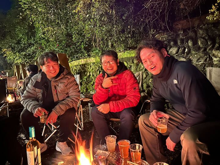 火を囲みながらだとつい本音が出てしまうのでしょうか…非常に楽しそうなご様子です👀