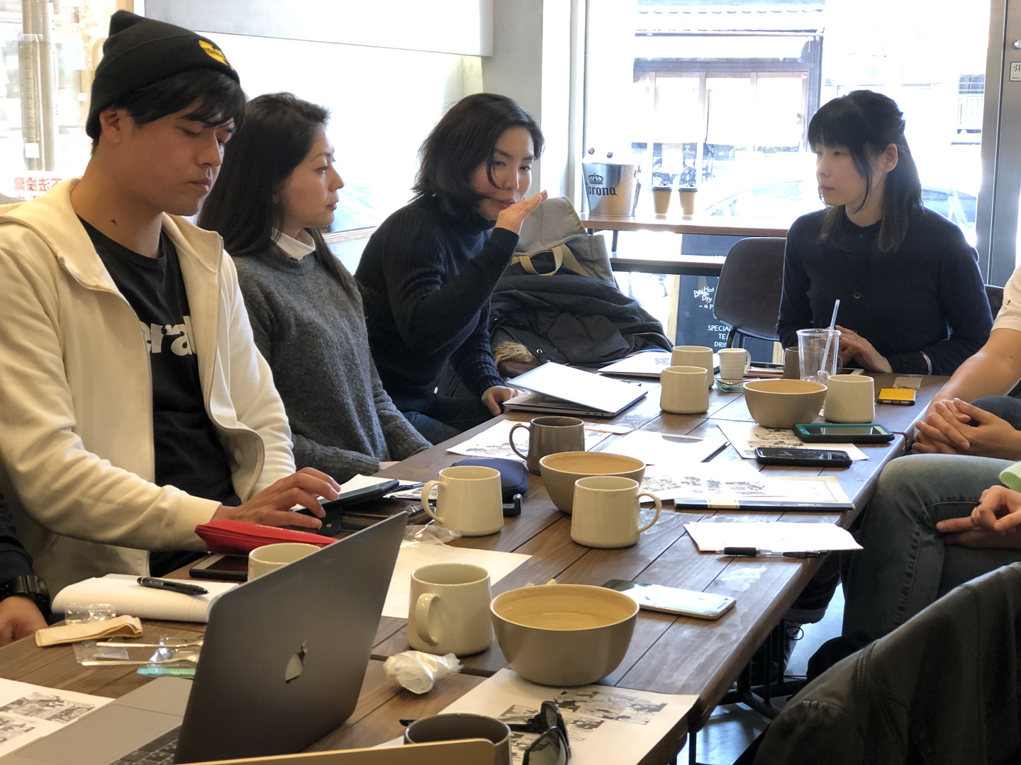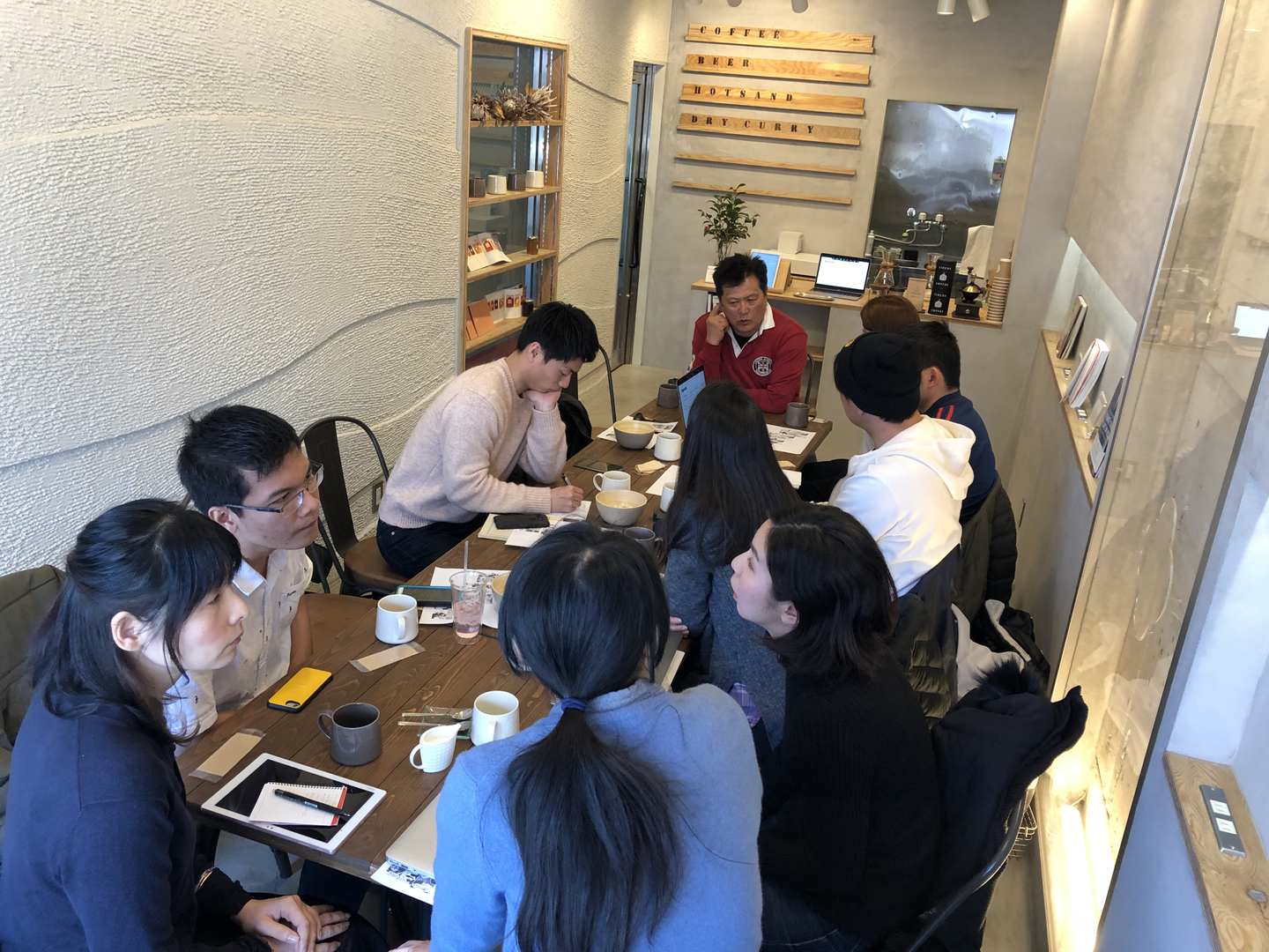 社員と一部アルバイトクルーでミーティングを開きました。クリエイティブな発想ができるようにカフェをお借りして。