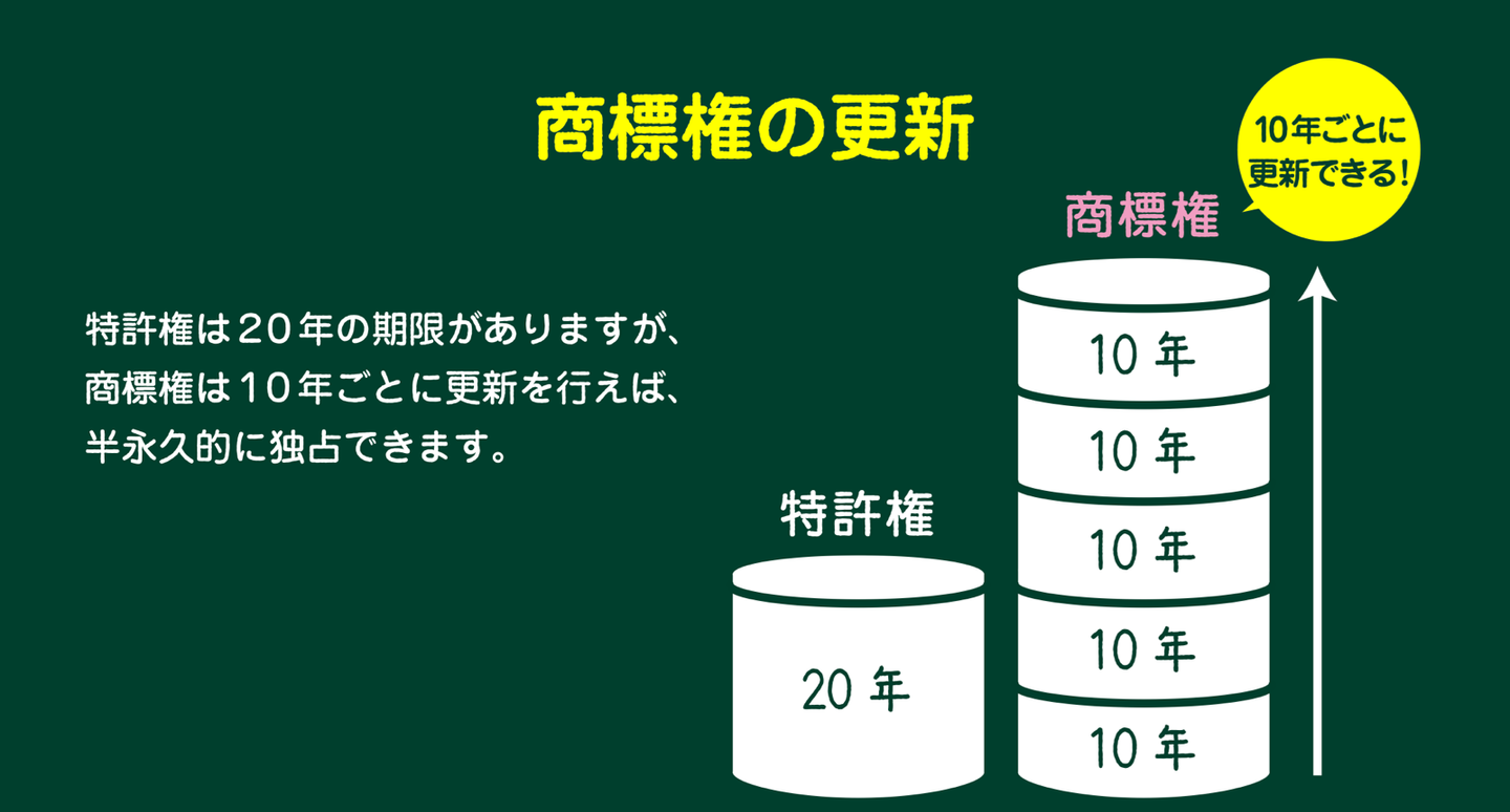 商標権は、日本では10年に1回更新の手続きが必要ですが、更新手続きを忘れてしまうと権利が消滅し、その商標を誰でも使用することができるようになります。