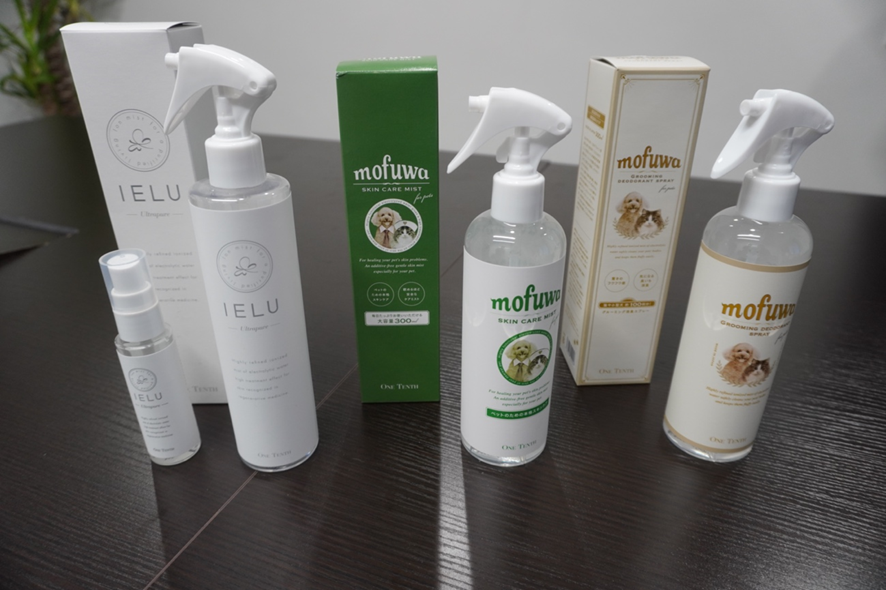 「IELU」の効果を、より多くの方に実感してほしい。小さな命を守りたい。その想いで赤ちゃんにも使える除菌剤や化粧水、ペットにも使えるブラッシングスプレー、乾燥を防ぐスキンケアミストも販売しています。