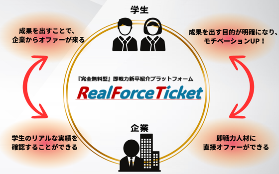Real Force Ticketとは、「完全無料型即戦力新卒人材逆求人サービス」です。