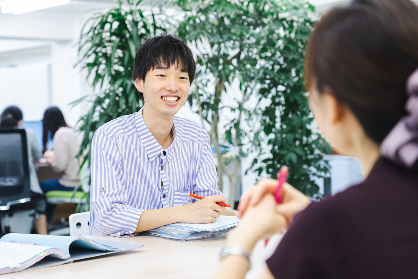 緑を基調とした落ち着いた雰囲気で働けるきれいなオフィス!