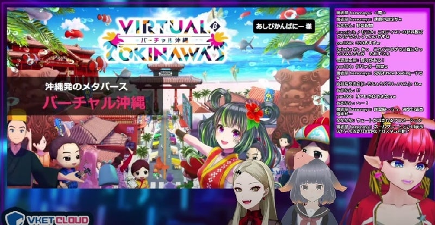 「バーチャル沖縄」は、株式会社あしびかんぱにーが開催する「OKINAWA JAPAN VIRTUAL FES(通称:OKIVFES)」に合わせて制作されたブラウザ会場で、開発にはVket Cloudが使用されています。