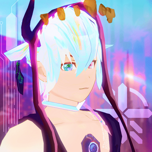 目元も同じようにパーソナルパターンで構成された模様と目の色をしてます。この目は僕が使う他のアバターでも共通化をしてます。