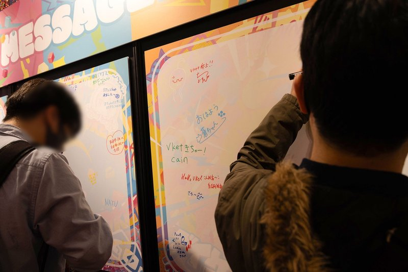 メッセージボードでは、様々な来場者からのコメントが書かれていました。ちなみにこのときは、初日のオープン直後だったため、スペースに余裕がある状態でした。