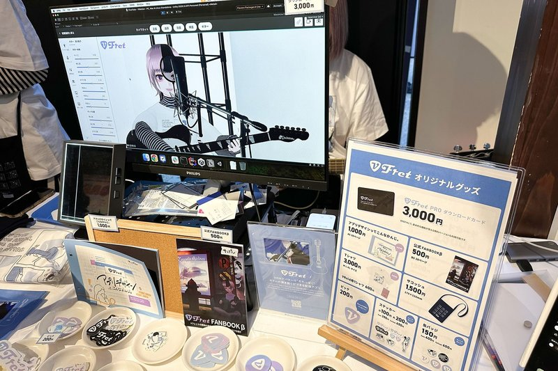 指定したテンポに合わせて、アバターがギターを弾いてくれる配信アプリの『Vフレット』。配信だけではなく、イメージビデオなどにも利用できるとのこと。