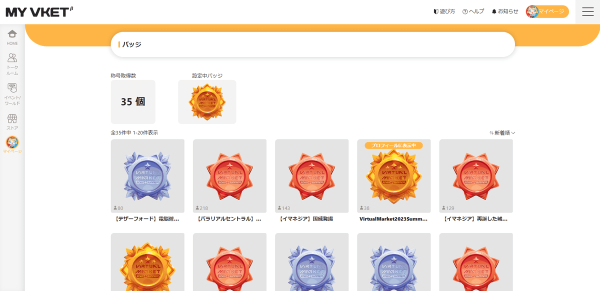 プロフィールページから獲得したバッジが確認できるので収集要素が好きなかたはぜひお楽しみください!