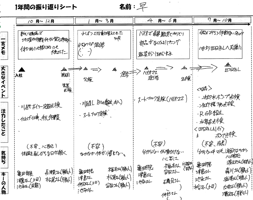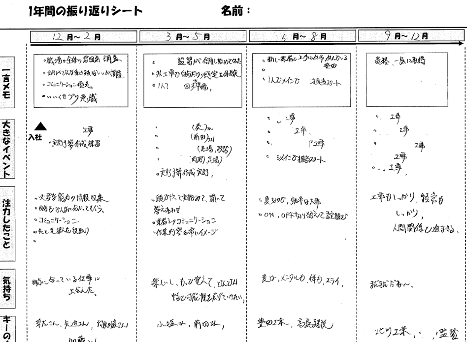 --入社1年研修では、入社してから1年間の振り返りが行われます。早速ですが、1年間の振り返りシートの内容を共有してもらえますか?