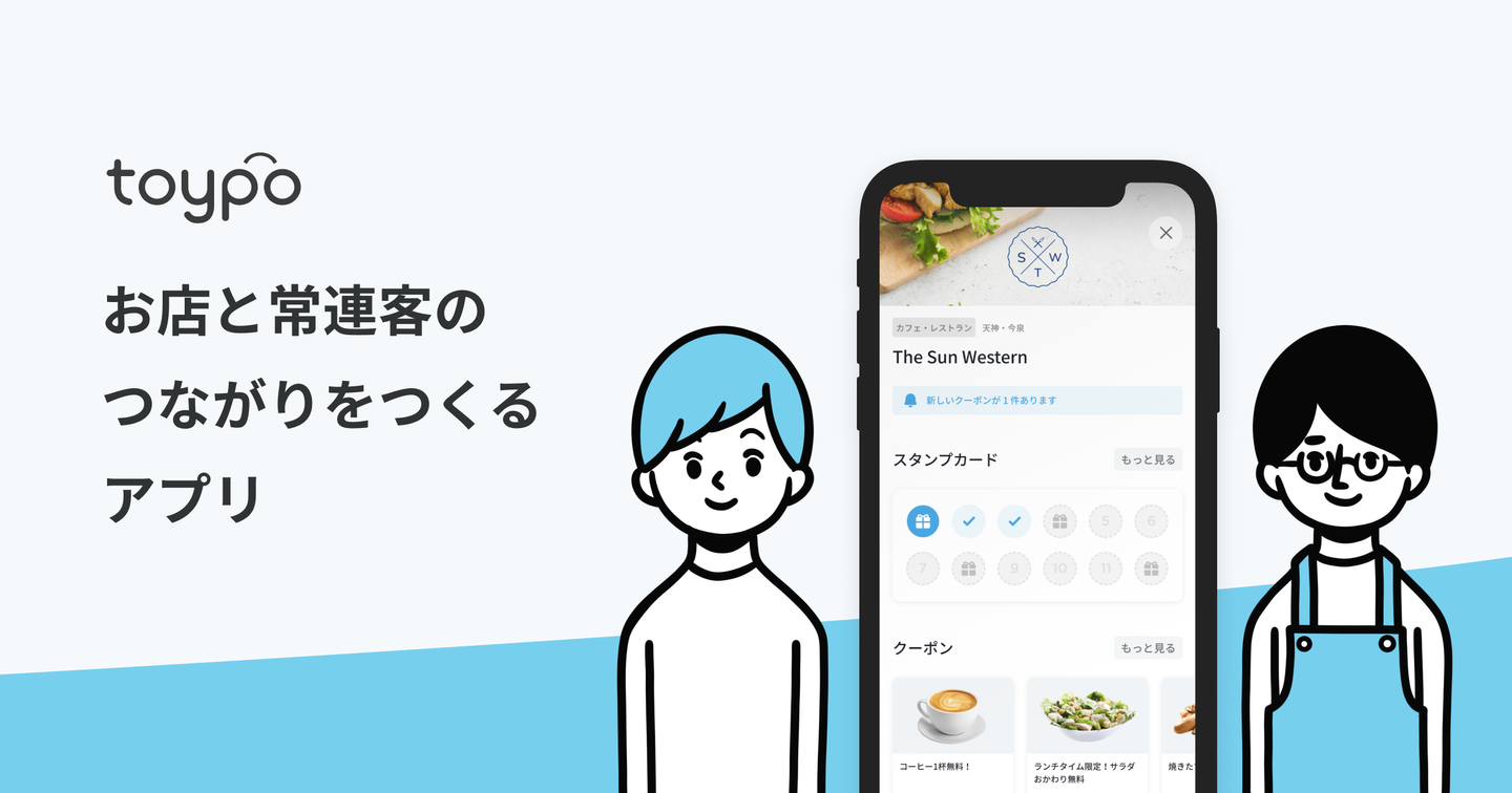 toypo(トイポ)はスマホひとつで常連を増やすことができる店舗向けアプリ公開プラットフォーム。