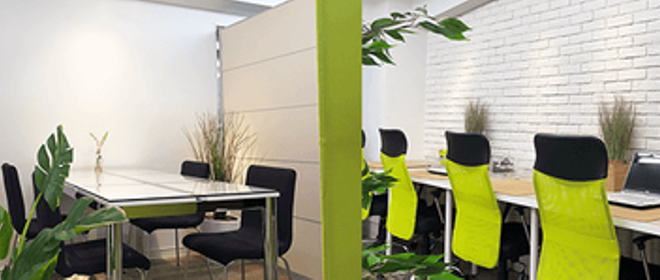 弊社のオフィスは、緑を取り入れた爽やかなデザインが特徴です。決して広くはありませんが、社員一人ひとりが気持ちよく働けるために、こだわり抜いたオフィスがここにあります。