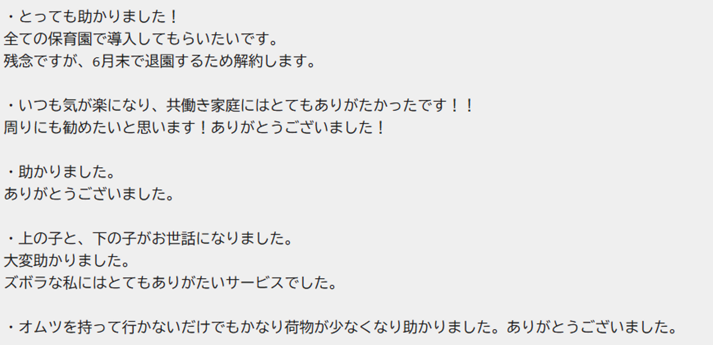 (保護者様からいただいたお声の一例)