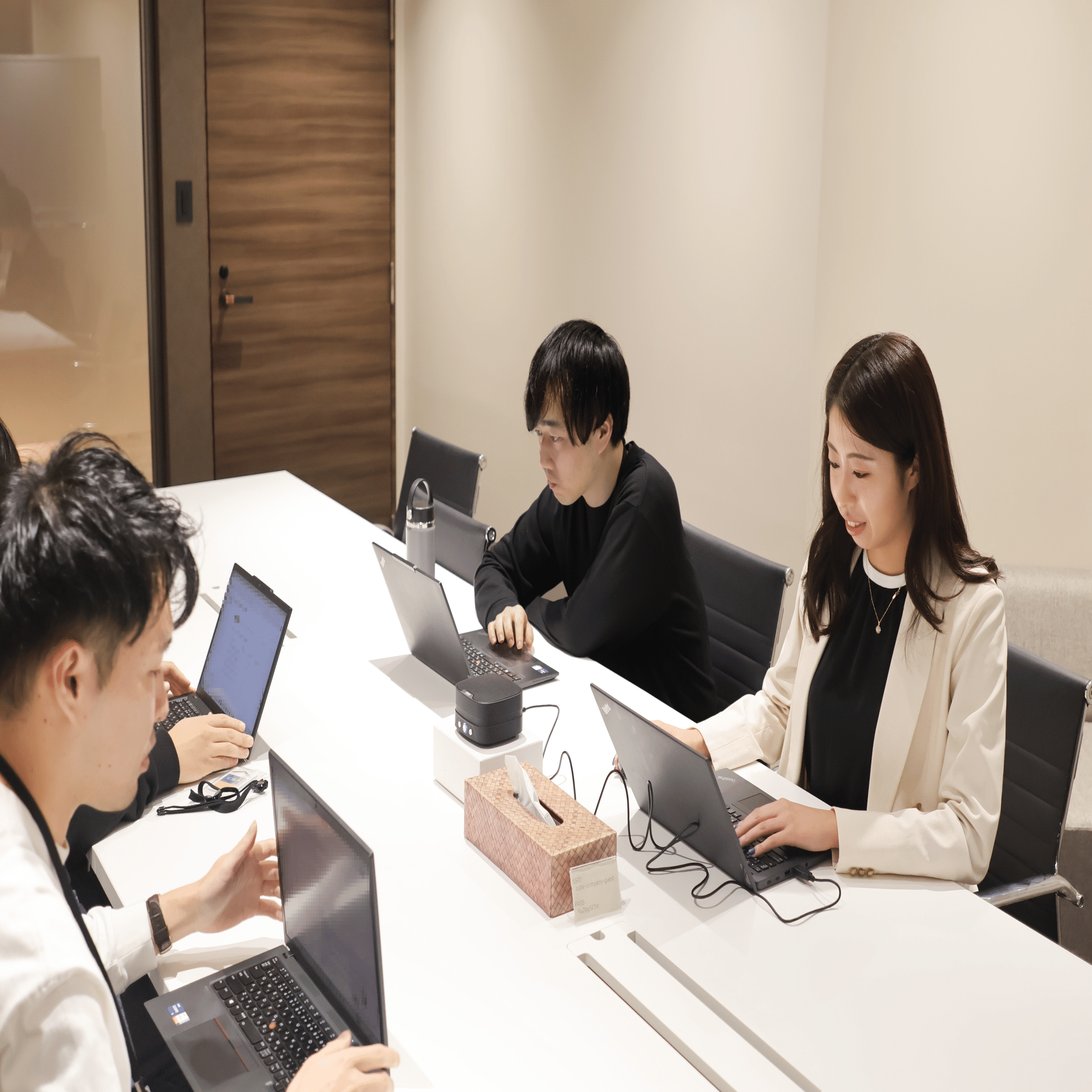 週次で、プロジェクトが同じ複数チームのメンバーが集まり、プロジェクト上長である執行役員の細澤に、進捗報告するMTGを行っています。