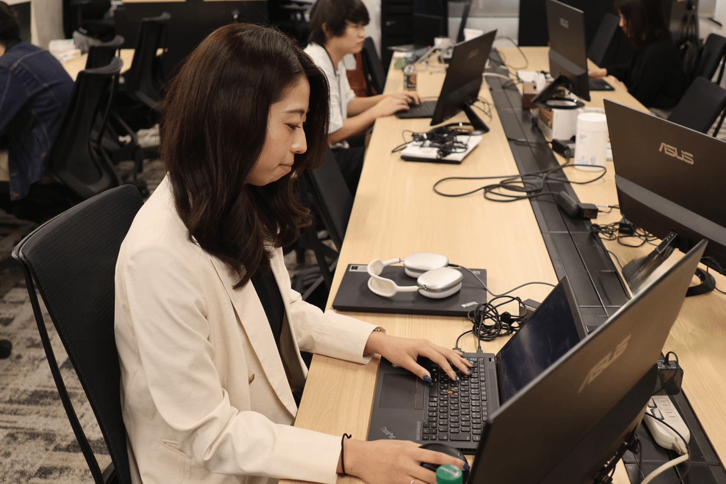 終業時間は案件状況により異なり、18時過ぎに終業する日もあれば、23時以降になることもあります。だいたいは19時~20時頃に終業しています。
