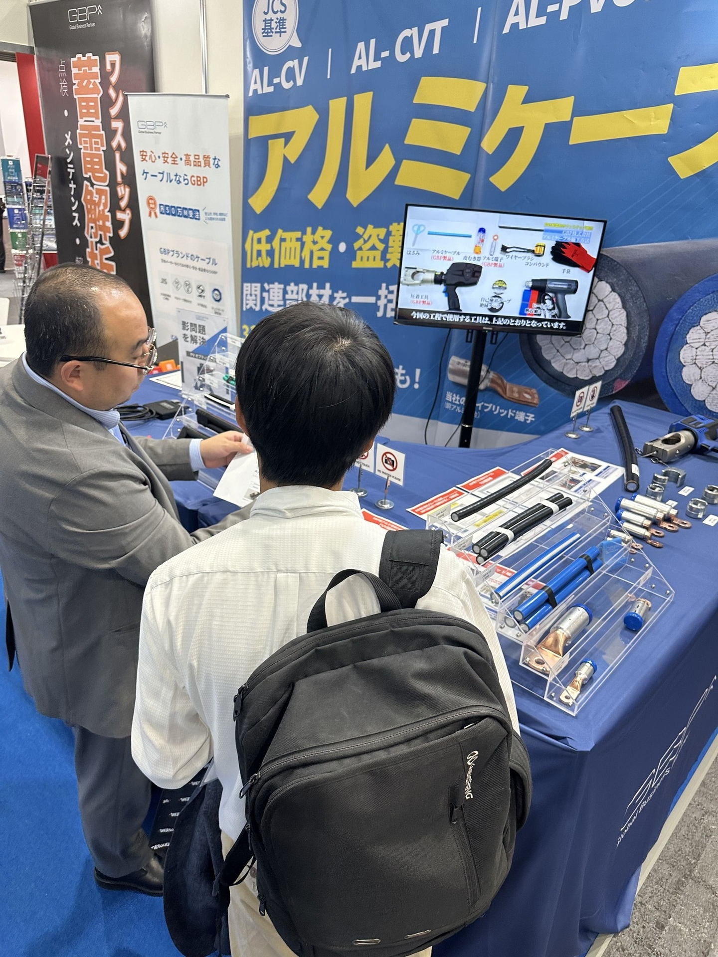 今回は、業界で注目を集めるアルミケーブルのワンストップソリューションについてのご紹介をしました♪ブース内では、アルミケーブルのサンプルやハイブリット端子(銅アルミ合金)、圧着工具など関連部材のサンプルをご用意!