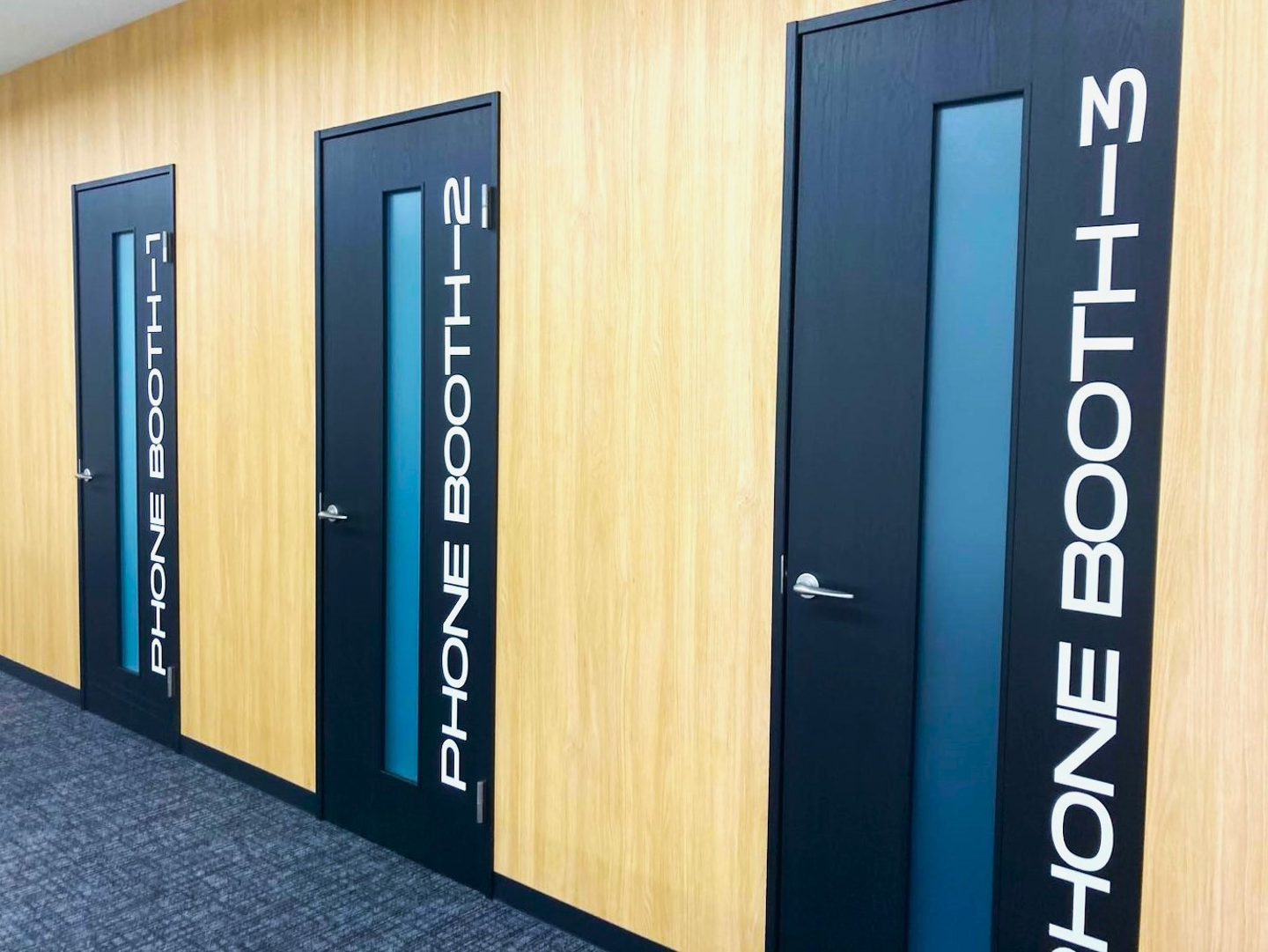 会議室が4つ、WEB打ち合わせ用のTEL BOXが3つ、フリーのファミレス席が2つ、フリーデスクは16名分のイスを用意。
