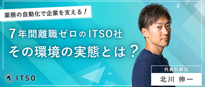 ITSOは、創業7年目を迎え、離職者ゼロという驚異的な成果を達成しています。プロジェクトごとにチーム制を導入し、業務を遂行することで、社員が一人で悩むことなく、リーダーや先輩、仲間と協力して課題に取り組む環境が整っています。給与も市況感のもと適正金額を支払う制度となっているので、自分のスキルや実力に自信をもって働けることが高い定着率へつながっています!