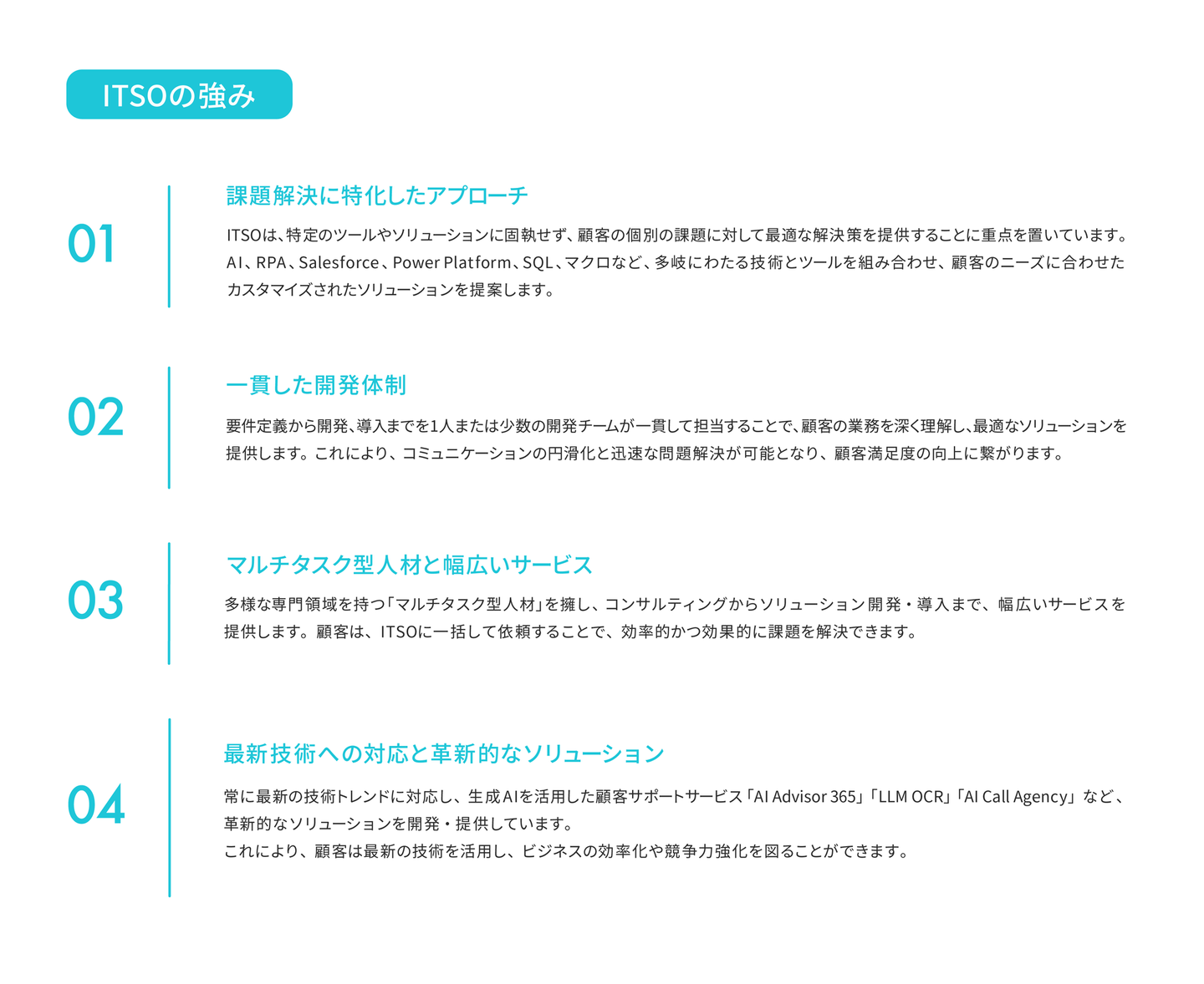 このビジネスモデルにより、ITSOは顧客のニーズに柔軟に対応し、真のデジタル変革を実現することを目指しています。