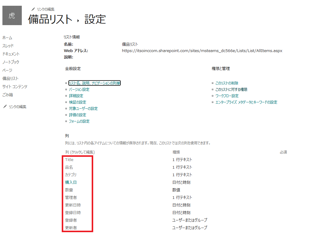 - 遷移先のURLの末尾にある「Field=」の後ろに書かれている値が内部列名