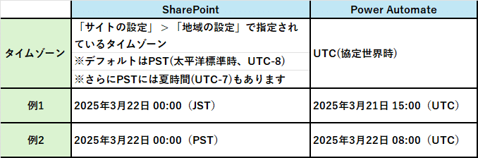 さらに複雑なのが、SPOサイトのデフォルトのタイムゾーンが「太平洋標準時(PST: UTC-8)」である点です。