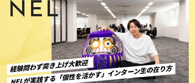 インターンとしてではなく、NELの仲間として活躍いただける環境です。これまでNELで活躍したインターンの中には、大企業との新規プロダクトの開発を牽引したメンバーもいます。上司のサポートを受けながら、主体性を持って進めていただけます。できる方・したい方には裁量の大きな仕事をどんどんお任せしていきます。