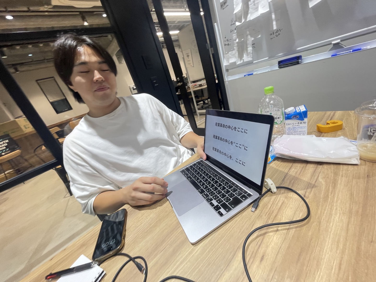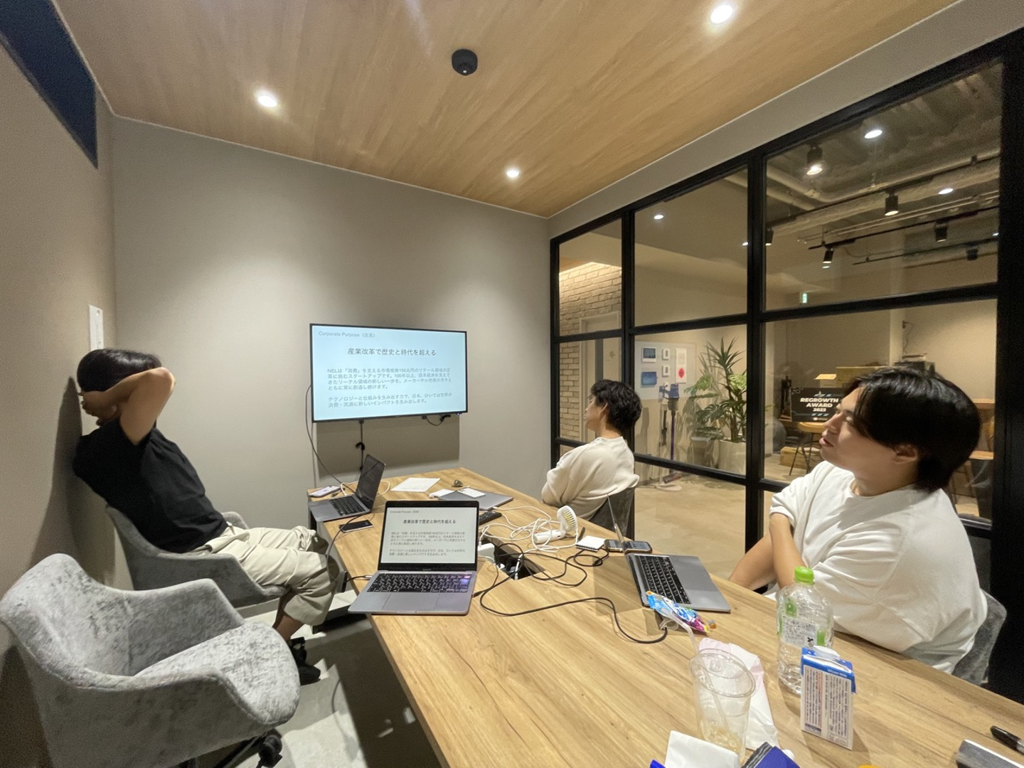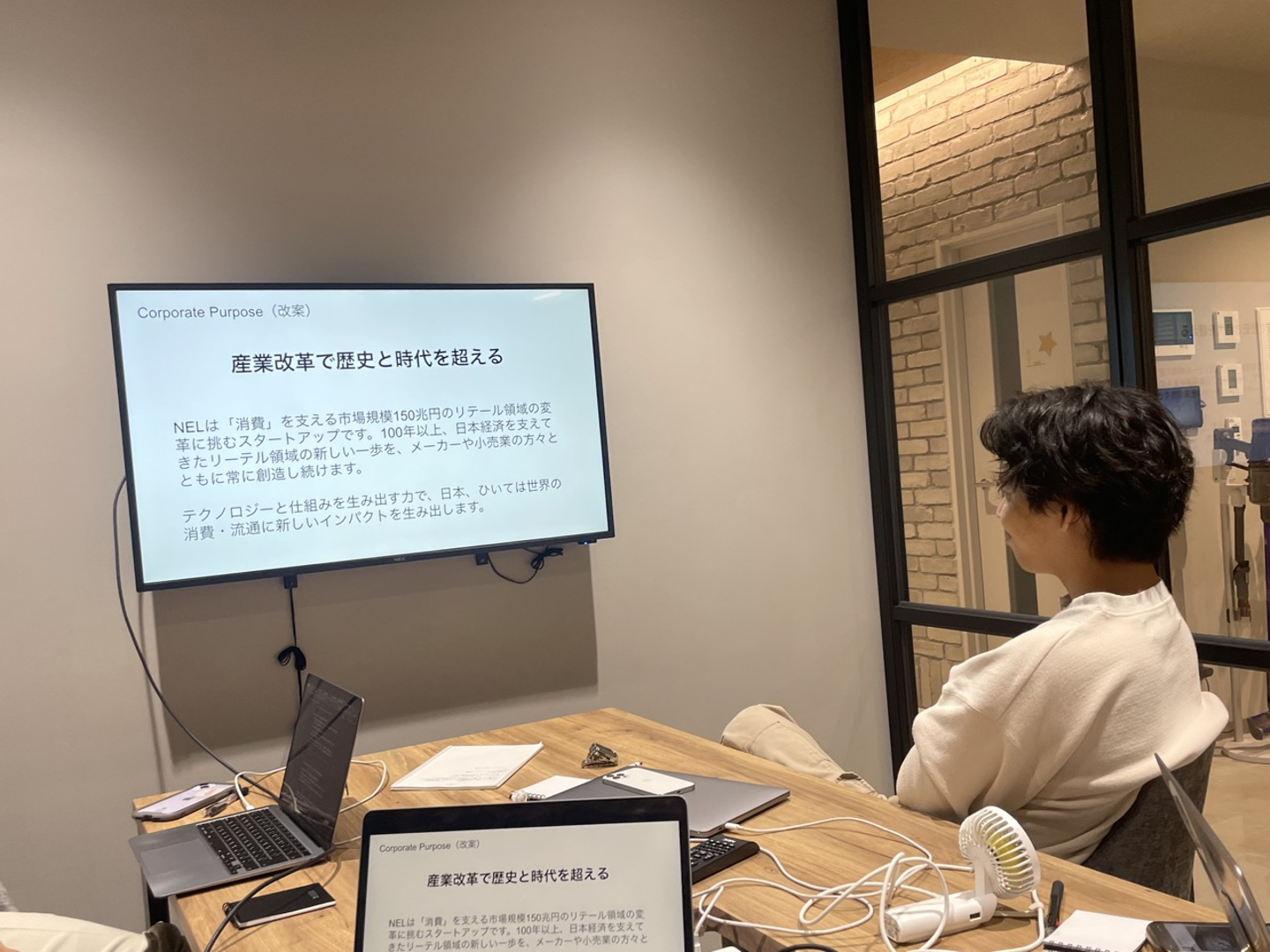 今回のディスカッションは僕とCOOの寺尾、営業部長の山川の3人で行いました。経営合宿の1コマとして、NELのパーパス・ミッション・バリューについて考える時間をつくり、議論しました。