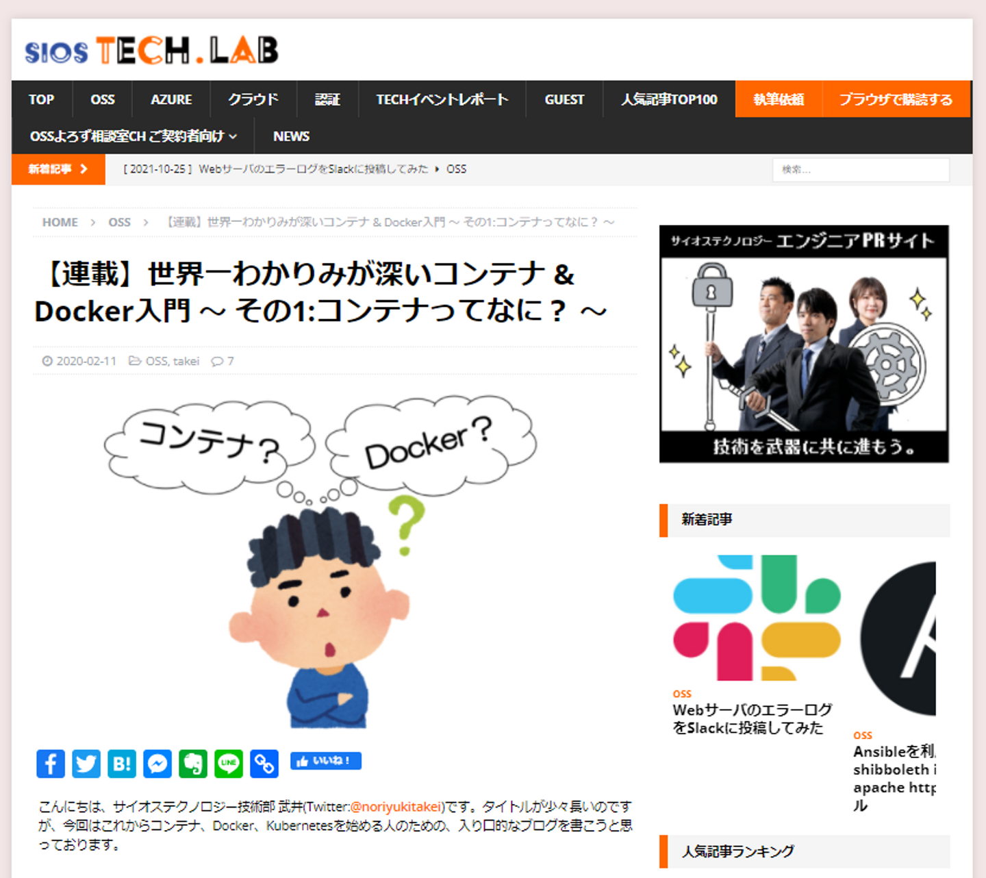 特に人気なのが 「世界一わかりみが深いコンテナ&Docker入門 」 のシリーズ記事です!