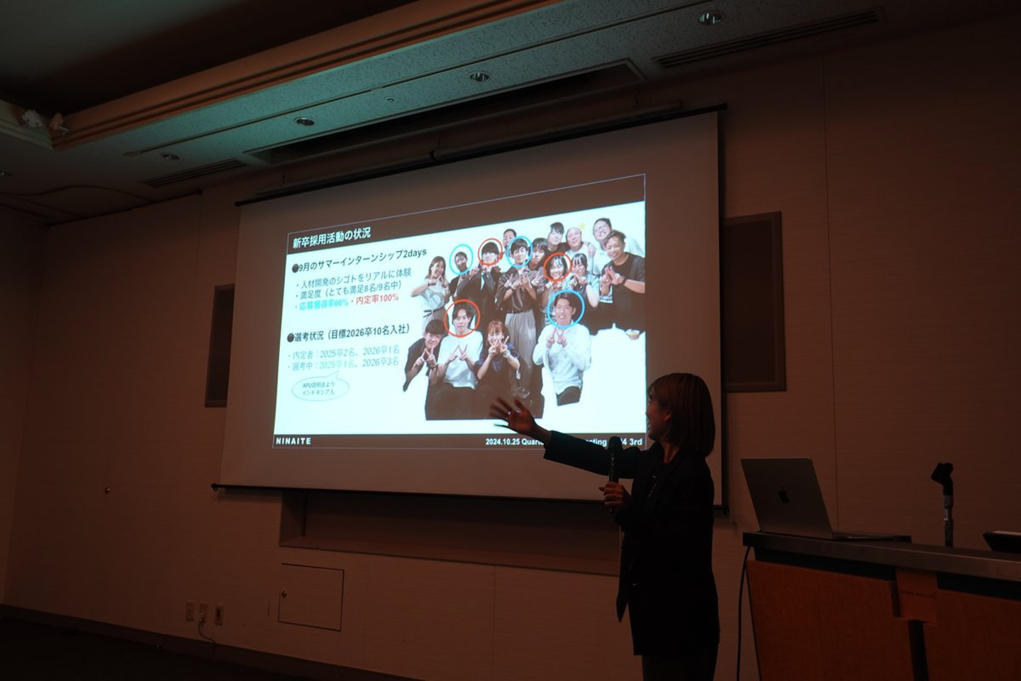 採用担当からも3ヶ月間の累計応募数や、求人倍率の発表がありました。NINAITEは3ヶ月で約200名の応募があり、4名が内定。