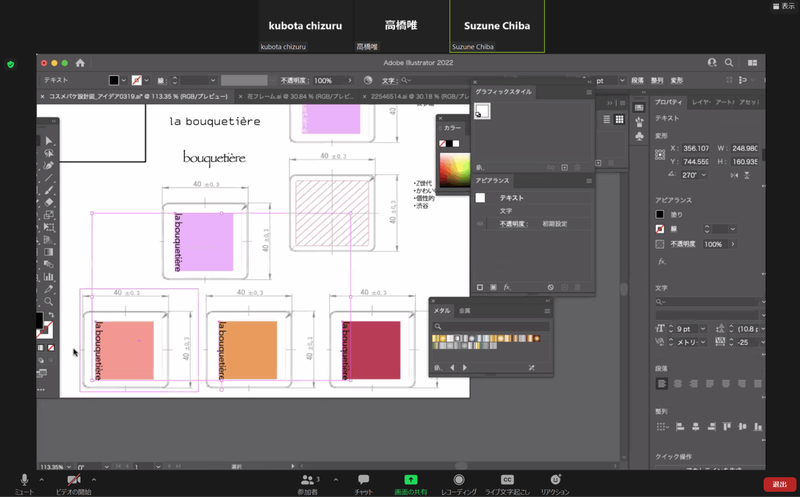 前回のミーティングで決まったブランド名と色展開、またそれらに込めた想いをTOKIWA KOBOの担当の方に説明しました。それに対してまたアドバイスをいただきつつ、インターン内で再度詳細を詰めていきました。