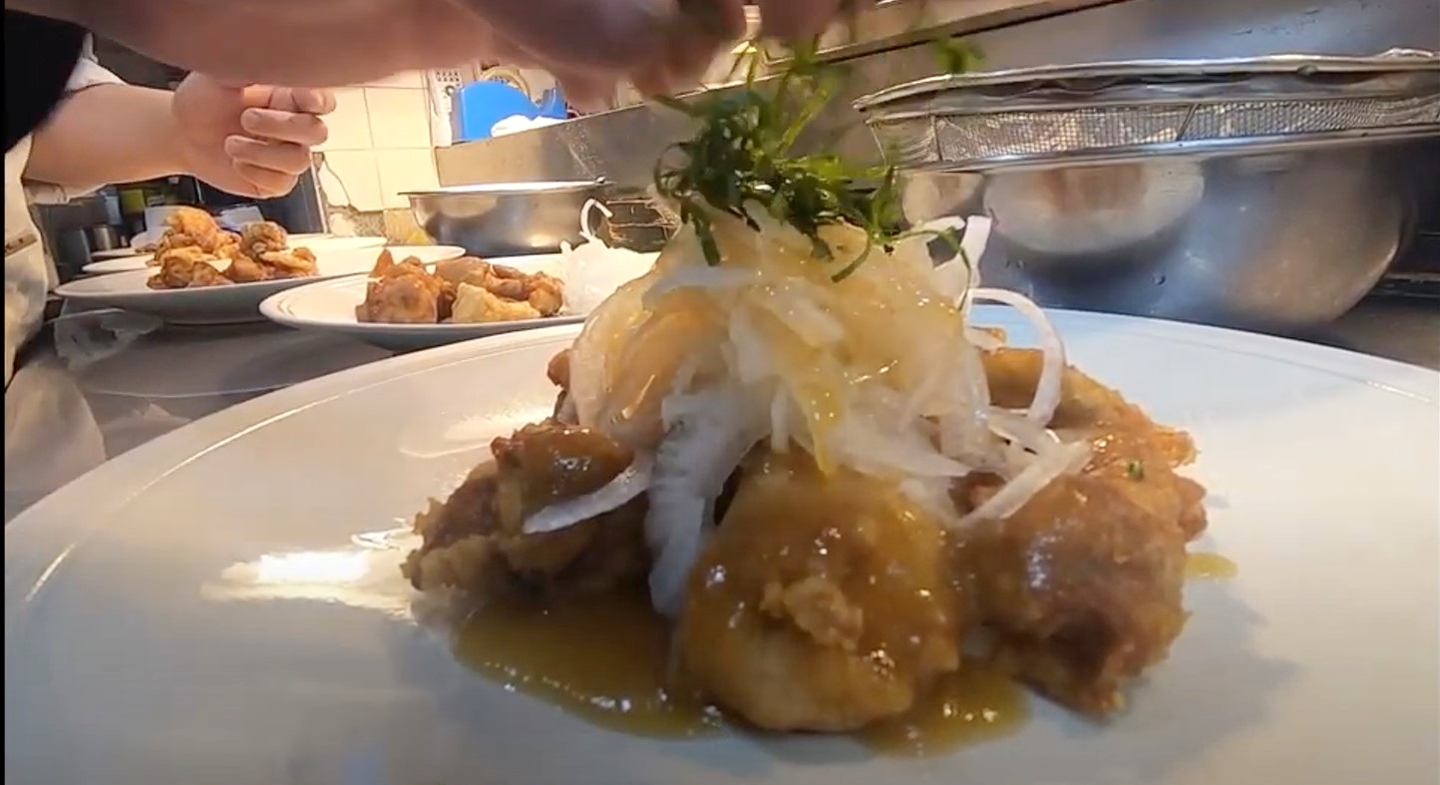 最後に、シェフ特製のみぞれ餡と新玉ねぎをトッピング。