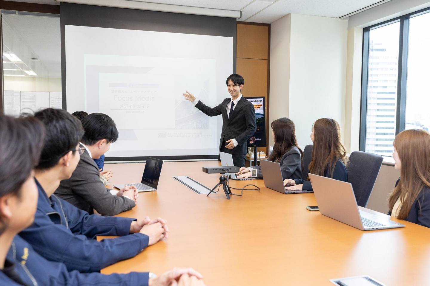 一番のやりがいは、まさに新しいメディアをゼロから創るダイナミズムです。また、エレベーター広告世界No.1企業の日本法人で、事業スケールの大きさや、資本力を背景にしたスピード感も強みです。「本気で市場をつくりにいく」という空気を日々感じます。