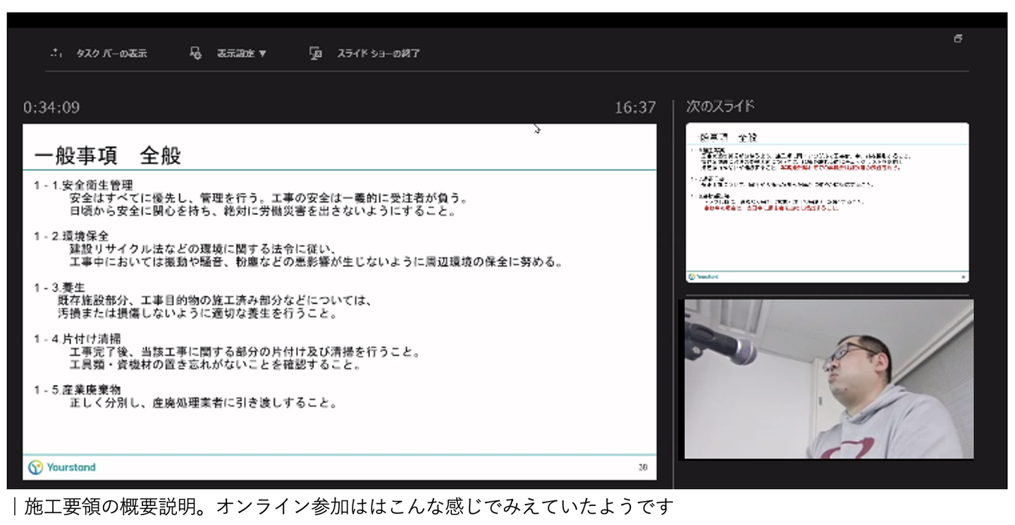 施工要領の概要を発表。来年度に向けた当社からの依頼事項なども共有されました。