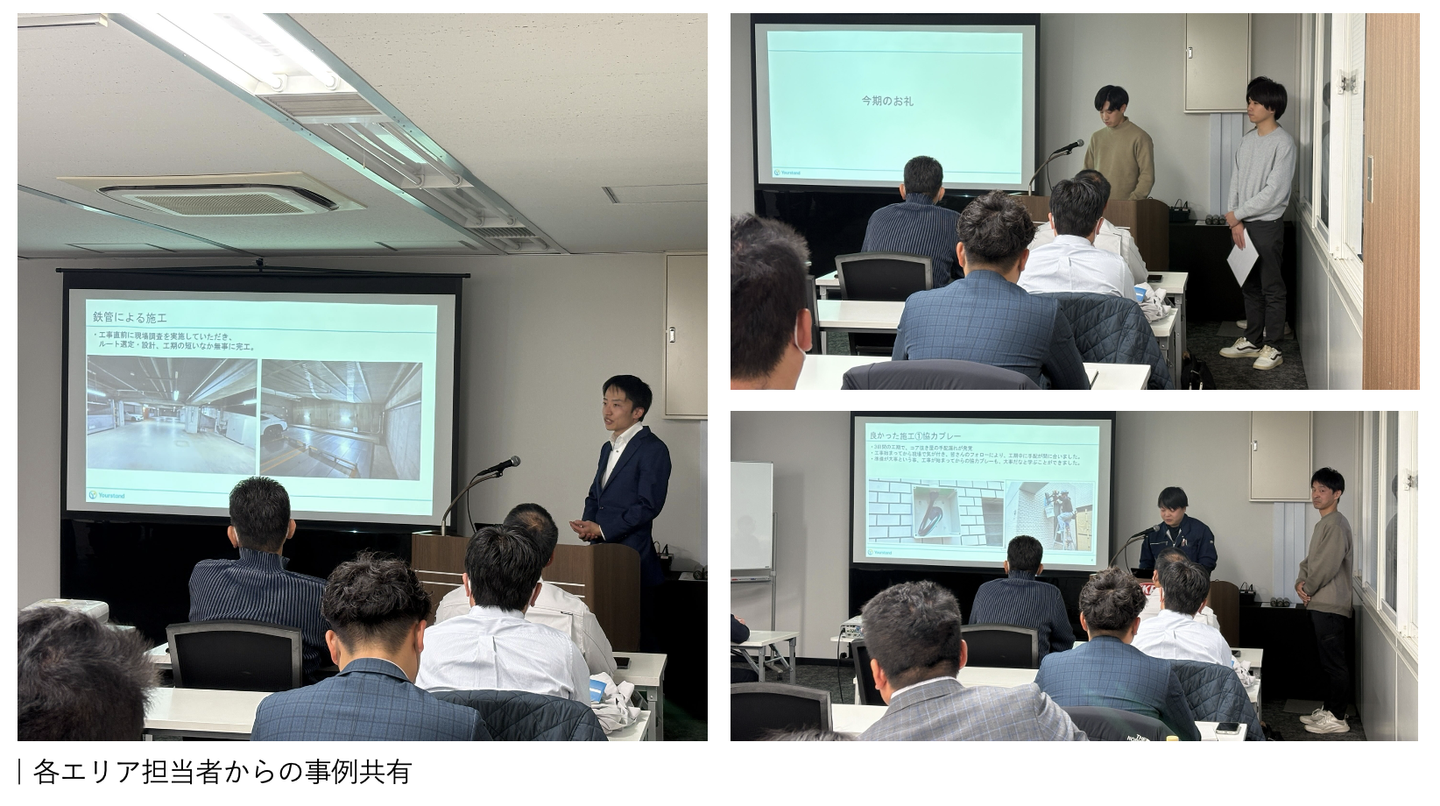 続いて、当社の首都圏、名古屋、大阪の各エリアの代表者から施工事例の共有です。