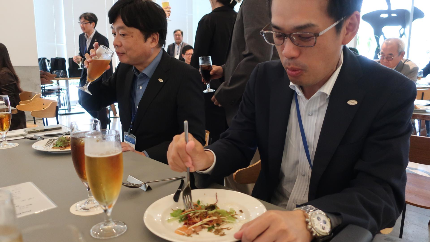 後半は食事をしながら・・・神戸浦中さん・東北菊池さん、乾杯の音頭でスタート
