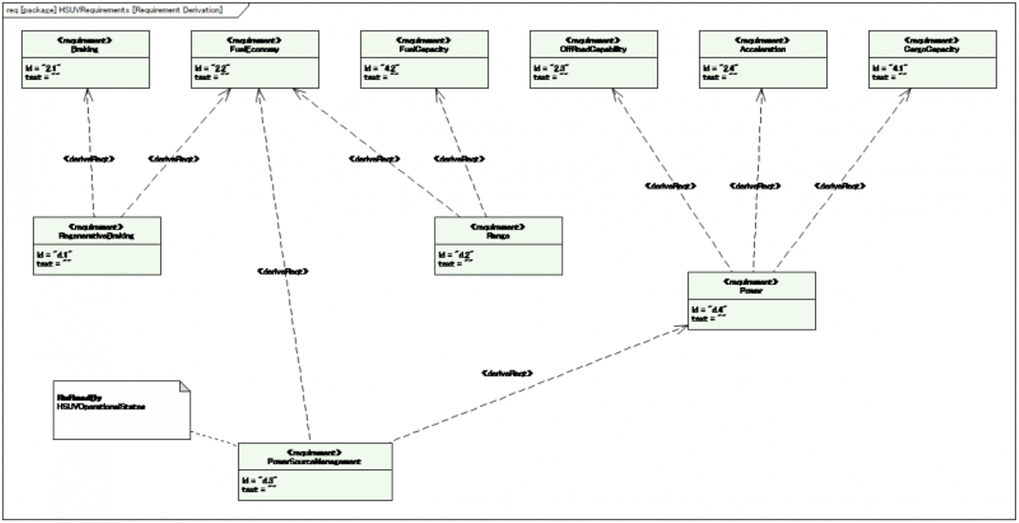 従来の方法では別の文書で管理されることの多い要求やテストなどもモデル内に表現し、要求とその要求を実現するブロックとの関係や、テスト項目とテスト対象のブロックとの関係を目に見える形で表現できます。