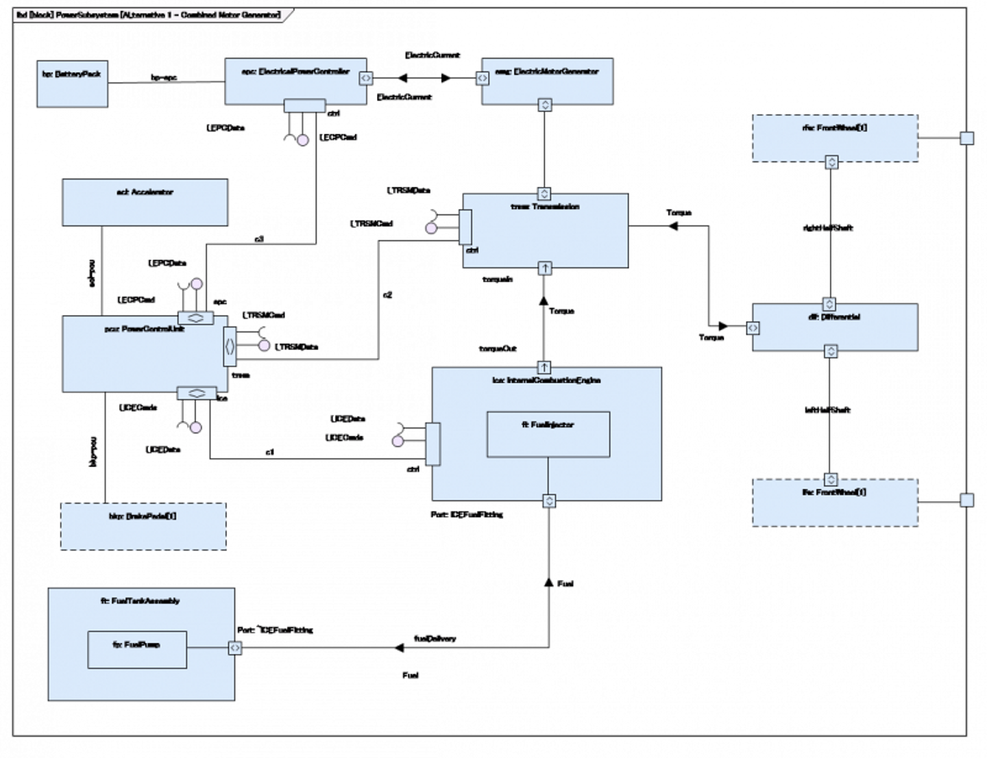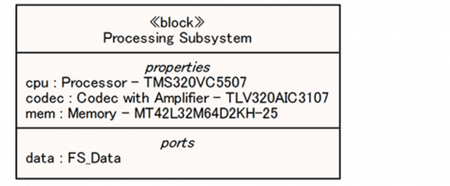 SysMLではシステムの構成要素をブロックという単位で取り扱いますが、そのブロックの内部の構成を表現できます。