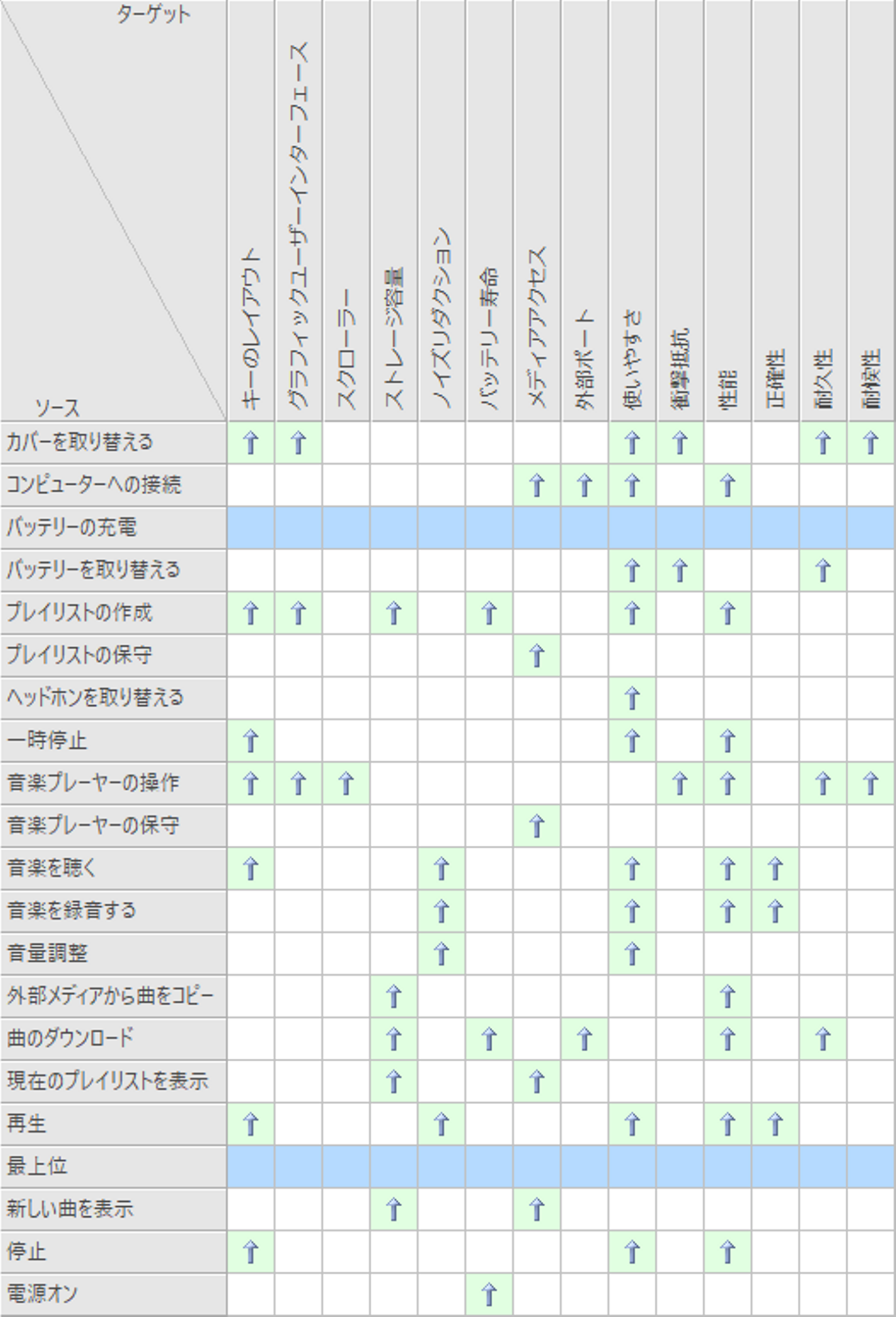システムへのそれぞれの要求を要素(図形)として表現し、要求間の依存関係などを線で可視化します。