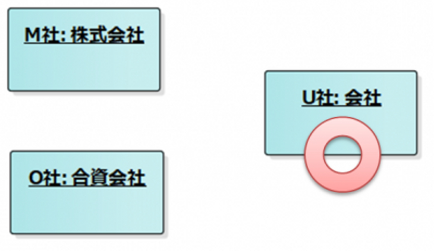 「会社」クラスは抽象クラスにします。抽象クラスは、インスタンス化することができないクラスですから、「会社」クラスのインスタンスとしての会社(下図のU社)を作ることが出来なくなります。